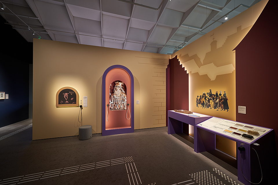 Es ist traditionell das Anliegen des Hauses der Bayerischen Geschichte, ein Ausstellungserlebnis für alle zu ermöglichen. So legt das HdBG auch seit jeher großen Wert darauf, seine Ausstellungen barrierefrei und inklusiv zu gestalten. Beispiele für die Umsetzung sind eine gut lesbare Schrift mit hohem Kontrast, Tastmodelle, Hands-On-Stationen, Texte in Leichter Sprache sowie ein inklusives Führungsangebot – all das ist bei den Landesausstellungen für das HdBG unverzichtbarer Standard. Selbstverständlich sind auch ausreichende Durchfahrtsbreiten für Rollstuhlfahrer und die Unterfahrbarkeit von Objektvitrinen.
